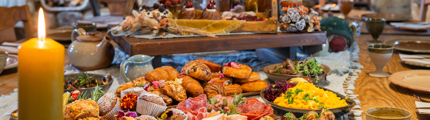 Follow your guide back over the double arch stone bridge to The Millhouse, just across the water from The Green Dragon Inn, where you will be treated to a breakfast spread fit for a Hobbit. The breakfast table will be heaped with seasonal fresh fruit, breads, pastries, preserves and cold meats. A hot breakfast selection featuring an assortment of a Hobbit's favourite breakfast staples including fluffy scrambled eggs, streaky bacon, potatoes, grilled sausages and rosemary mushrooms will be available.