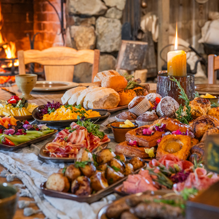 The Party Marquee is adjacent to The Green Dragon™ Inn with an exquisite view across the water. The painted canvas exterior, vibrant bunting and colourful lanterns means visitors are immersed in the festive magic of the movies. Your meal is served buffet style from a specially themed table, bursting with hobbit fare, with shared table seating to dine family style with your group to conclude your Middle-earth adventure.